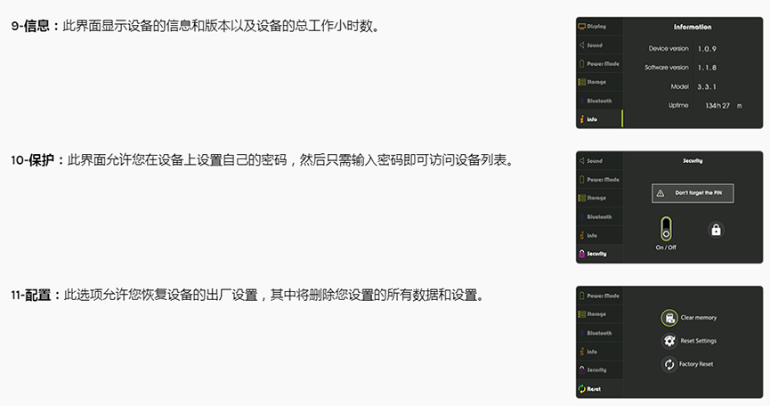 基本功率允許設備在好大聲級和搜索屏幕的背光級別下連續工作5個(gè)小時(shí)。