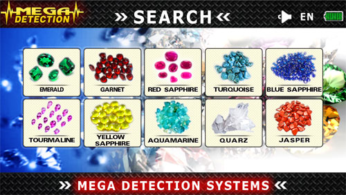 Mega Diamond Locator可以檢測從遠距離到極深的很少小尺寸的寶石。用戶(hù)可以在搜索過(guò)程之前選擇寶石的類(lèi)型。只需選擇其預設程序即可完成。