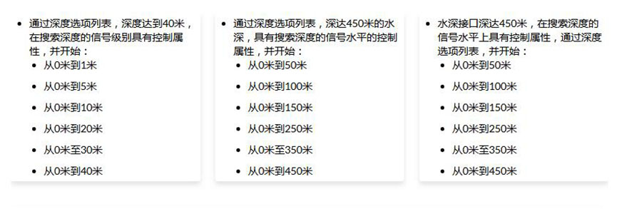 深度:40米 檢測水深度:450米 搜索范圍:2000米