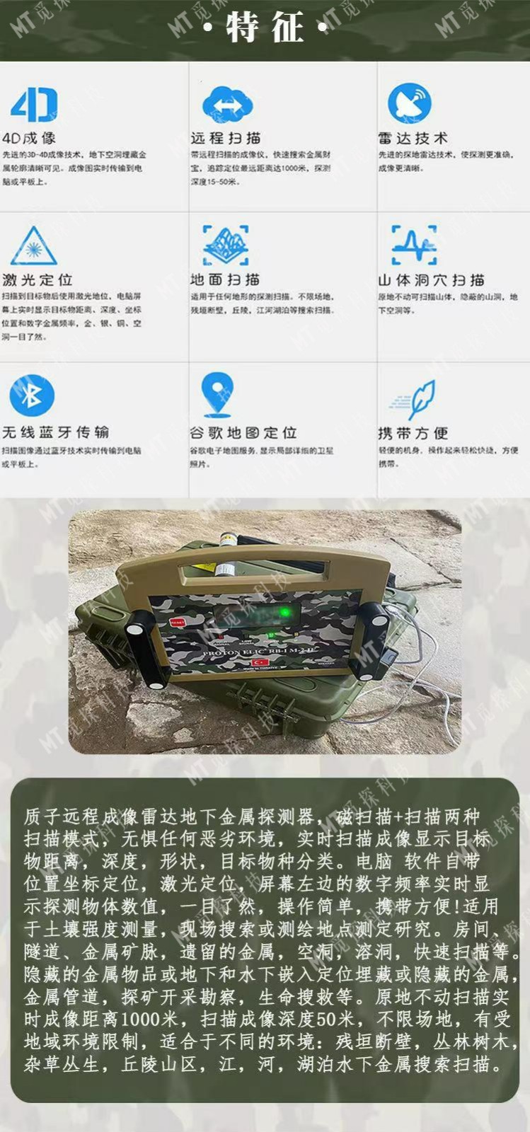 美國地質(zhì)雷達動(dòng)力探地成像洞穴礦脈礦產(chǎn)勘探寶藏金屬探測器