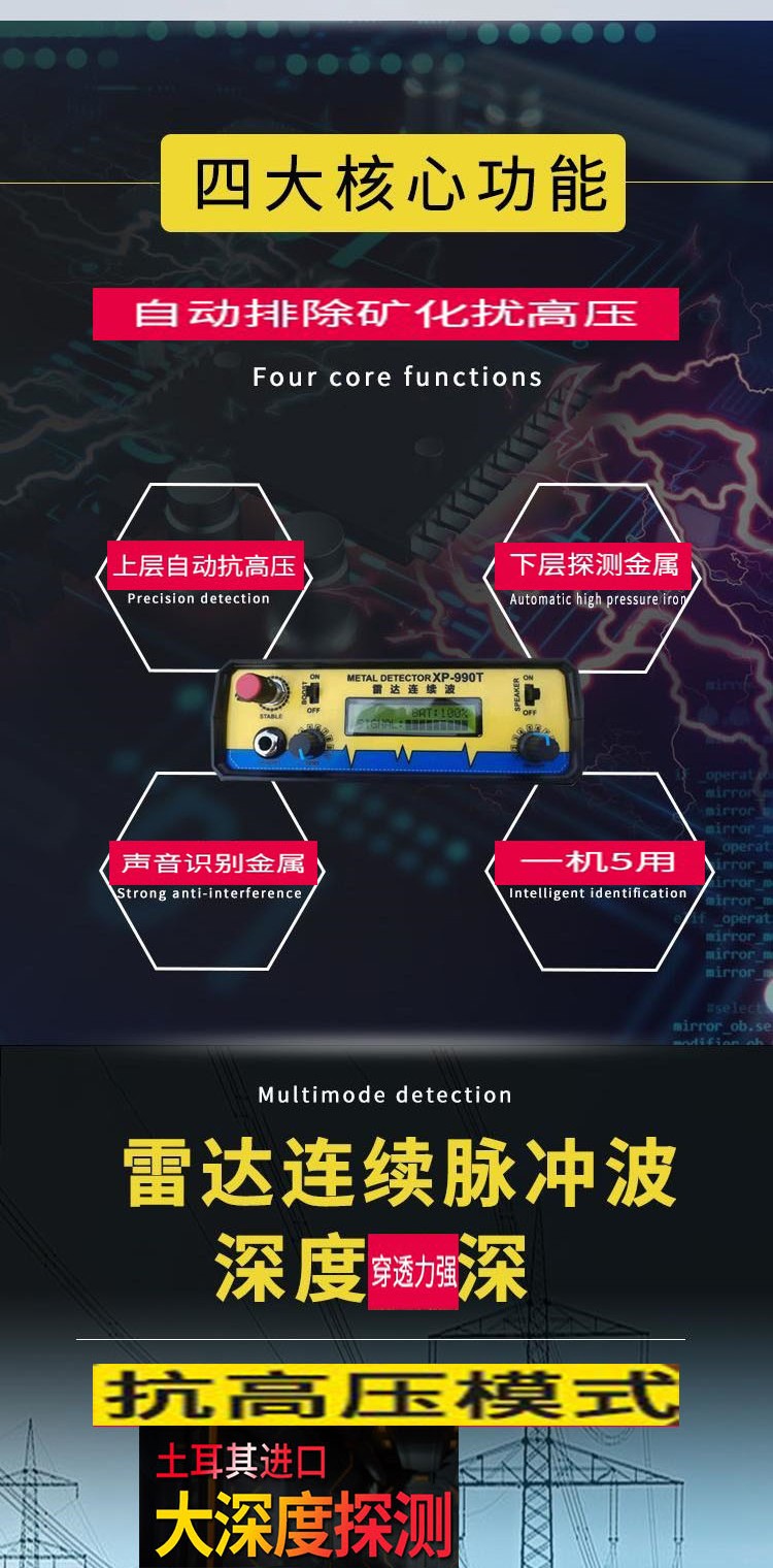 XP990T黑科技脈沖地下金屬探測器連續波立體框大深探寶器