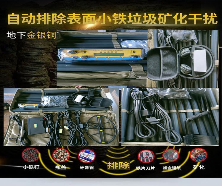 升級雙脈沖,智能化識別,一機五用,含四根探測線(xiàn)圈,手持探盤(pán),加長(cháng)型探棒,無(wú)線(xiàn)耳機等,可單框與立體框雙用!更加人性化,探測定位準確!