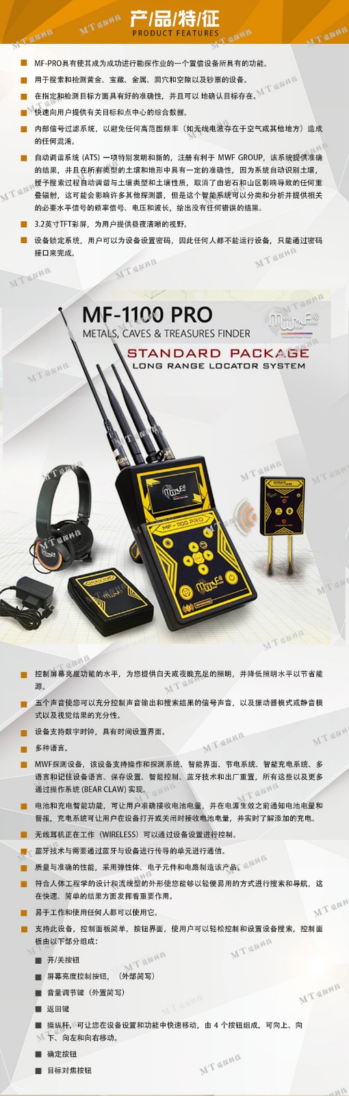 美國MF-1100PRO標準版探測黃金寶物洞穴空隙遠程定位金屬探測器