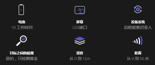 美國MWF進(jìn)口GOLD LINE版黃金探測器:專(zhuān)門(mén)用于黃金探測可在開(kāi)車(chē)或駕駛摩托車(chē)時(shí)在上車(chē)內使用該設備,它具有強大電子聚焦和傳感目標定位能力,以更小的速度達到目標中心,因為設備波長(cháng)響應速度快,可以非??焖俚胤治鰯祿盘?,附有振報警功能指向黃金中心,激光跟蹤功能,在夜間定位目標點(diǎn),易于任何人使用它!