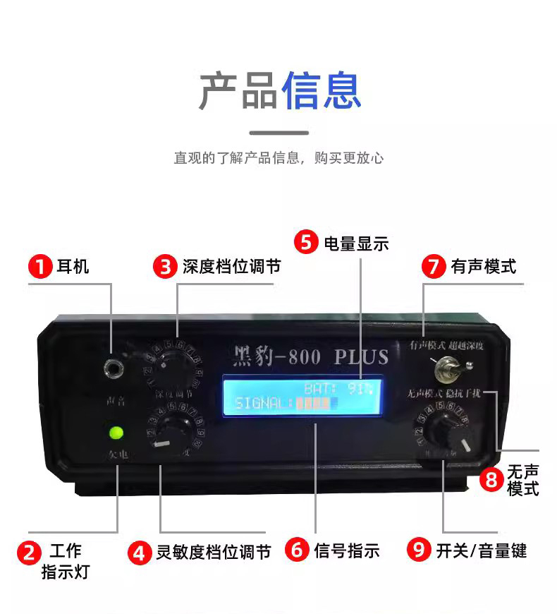 黑豹800-plus大深度脈沖地下金屬探測器戶(hù)外尋寶金銀銅探測器