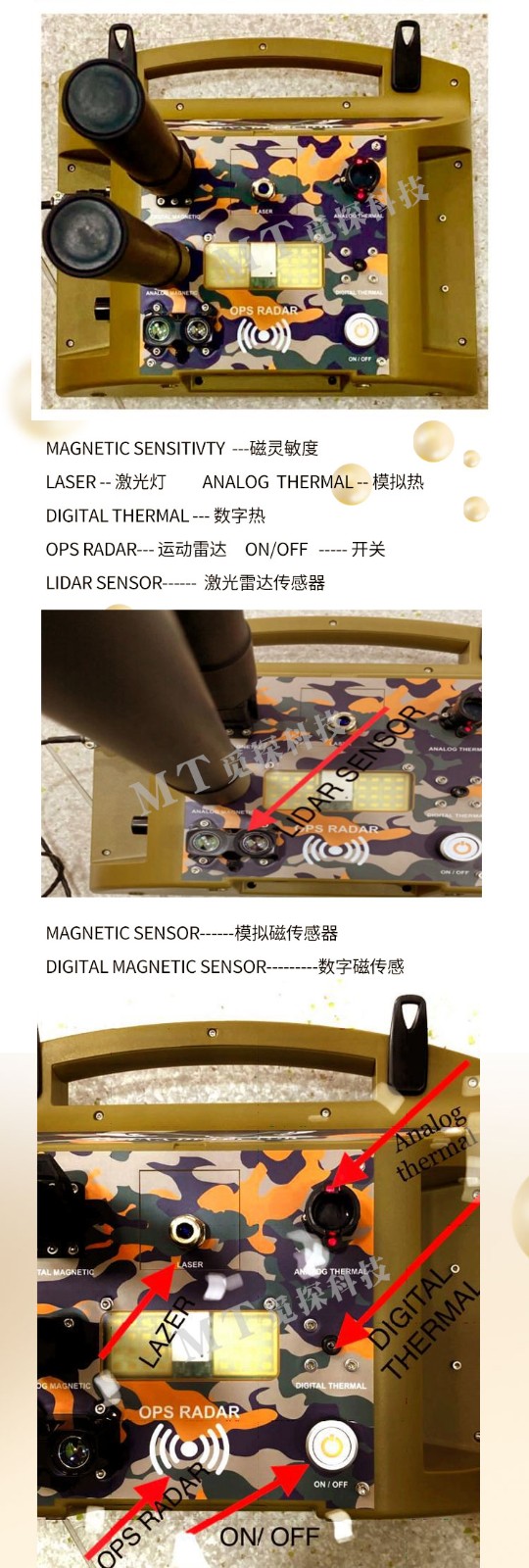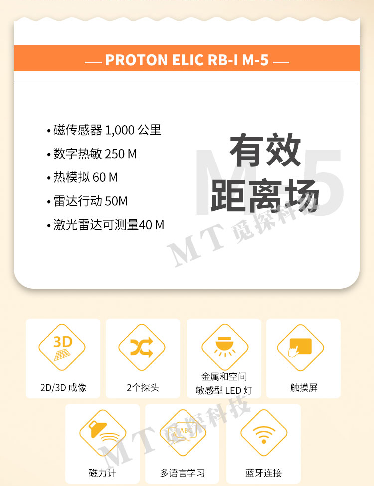 質(zhì)子雷達M5是質(zhì)子雷達系列先進(jìn)的一款遠程追蹤成像探地雷達,自帶顯示屏,多種掃描模式單探頭掃描模式,雙探頭掃描模式,戶(hù)外掃描模式,室內掃描模式,熱掃描模式,磁掃描模式,全地形掃描模式,數字,模擬兩根傳感器,數字,模擬兩個(gè)紅外熱感應模塊,新激光雷達,信號提升,圖像清晰,定位準確。
